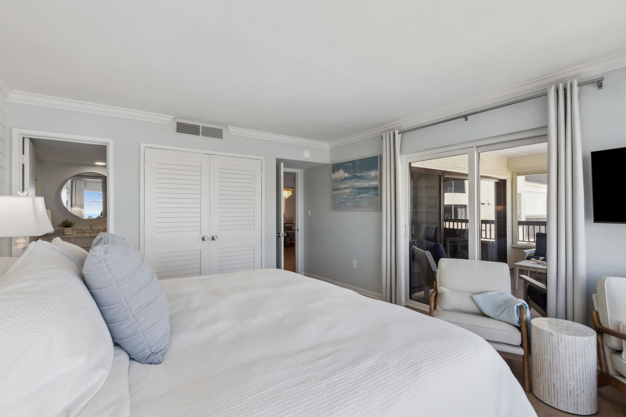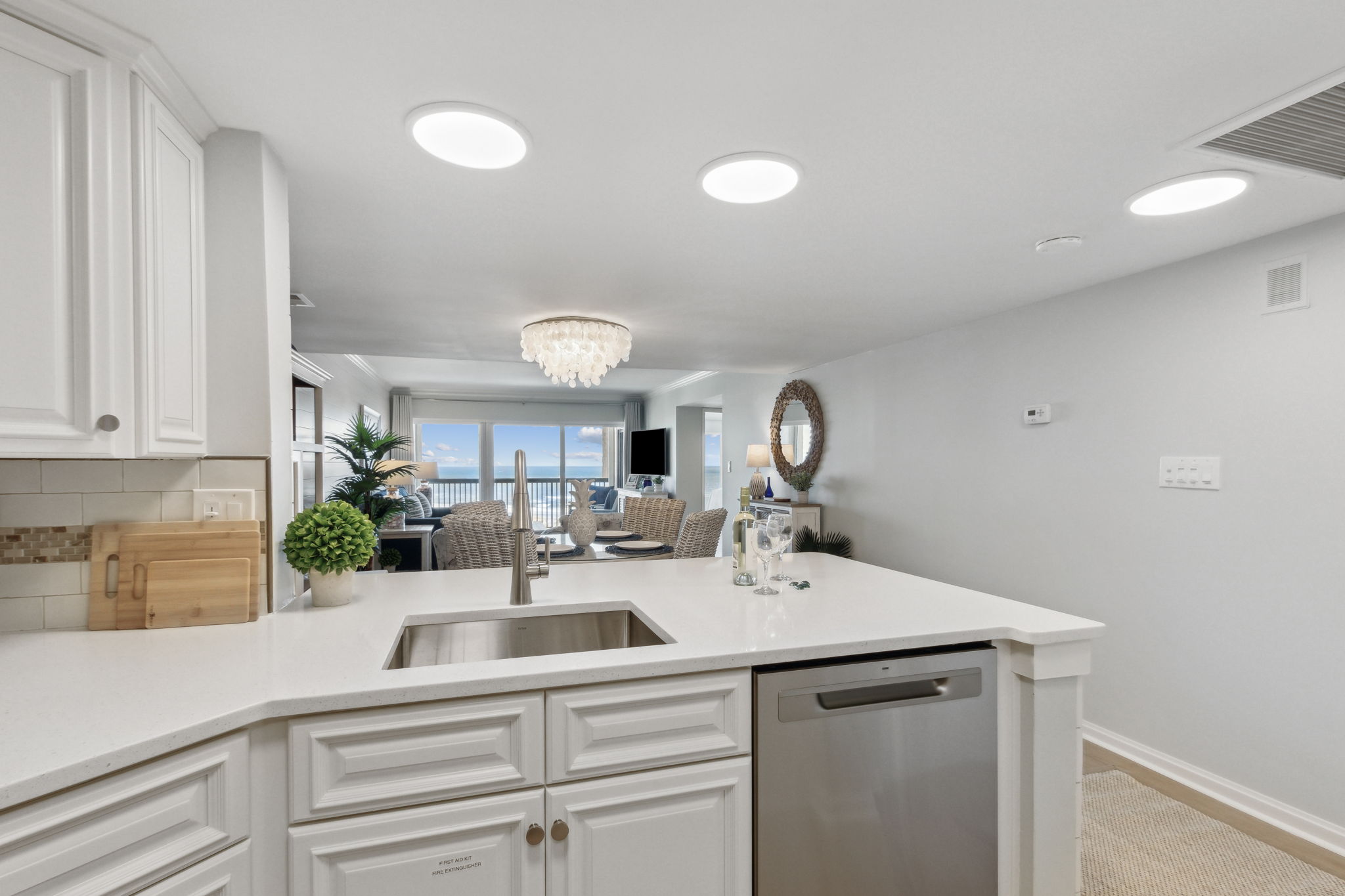 Designed for privacy and comfort, the oversized layout features two separate king suites, each beautifully furnished and thoughtfully appointed with plush bedding and private bathrooms — ideal for couples, family members, or friends traveling together. A comfortable open living and dining area serves as the heart of the condo, offering space to gather, relax, and enjoy time together without ever losing sight of the ocean. The updated kitchen includes modern appliances and everything you need for effortless meals and easy mornings.