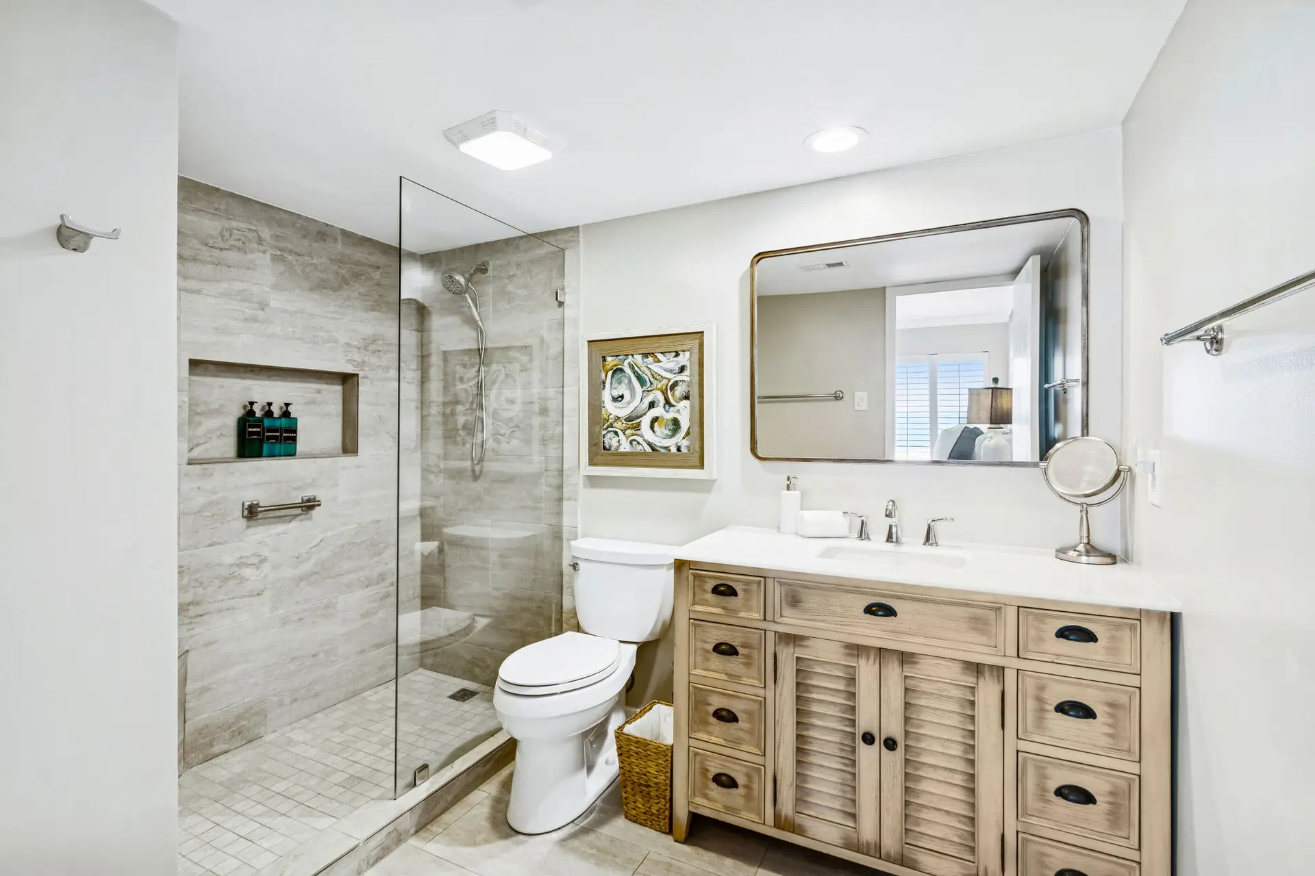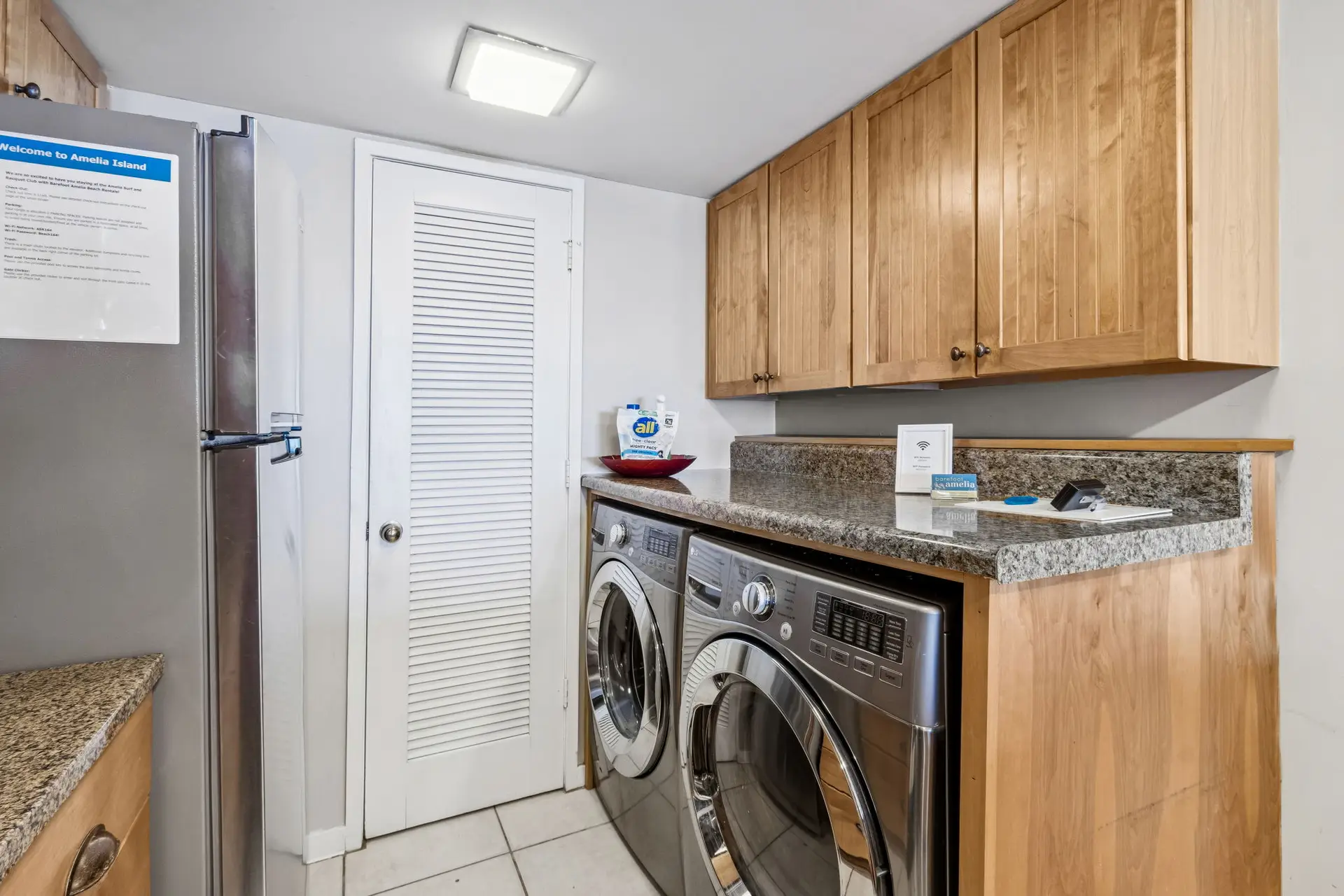- For your convenience, the unit is stocked with an iron/ironing board, washer/dryer, broom/dustpan, shampoo, conditioner, body wash, hair dryer, and beach towels.