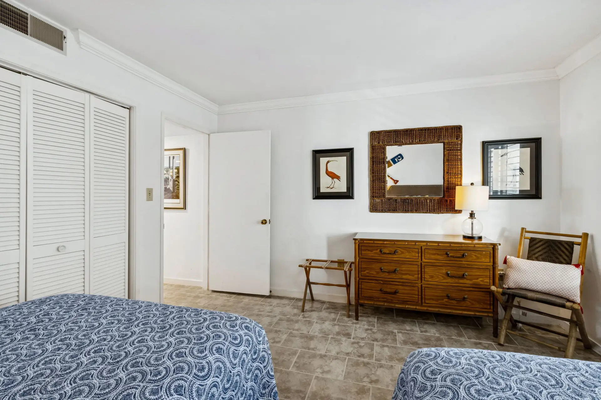 Second Bedroom: Two full-size beds and an attached bathroom with a shower/tub combo that also opens to the hall.