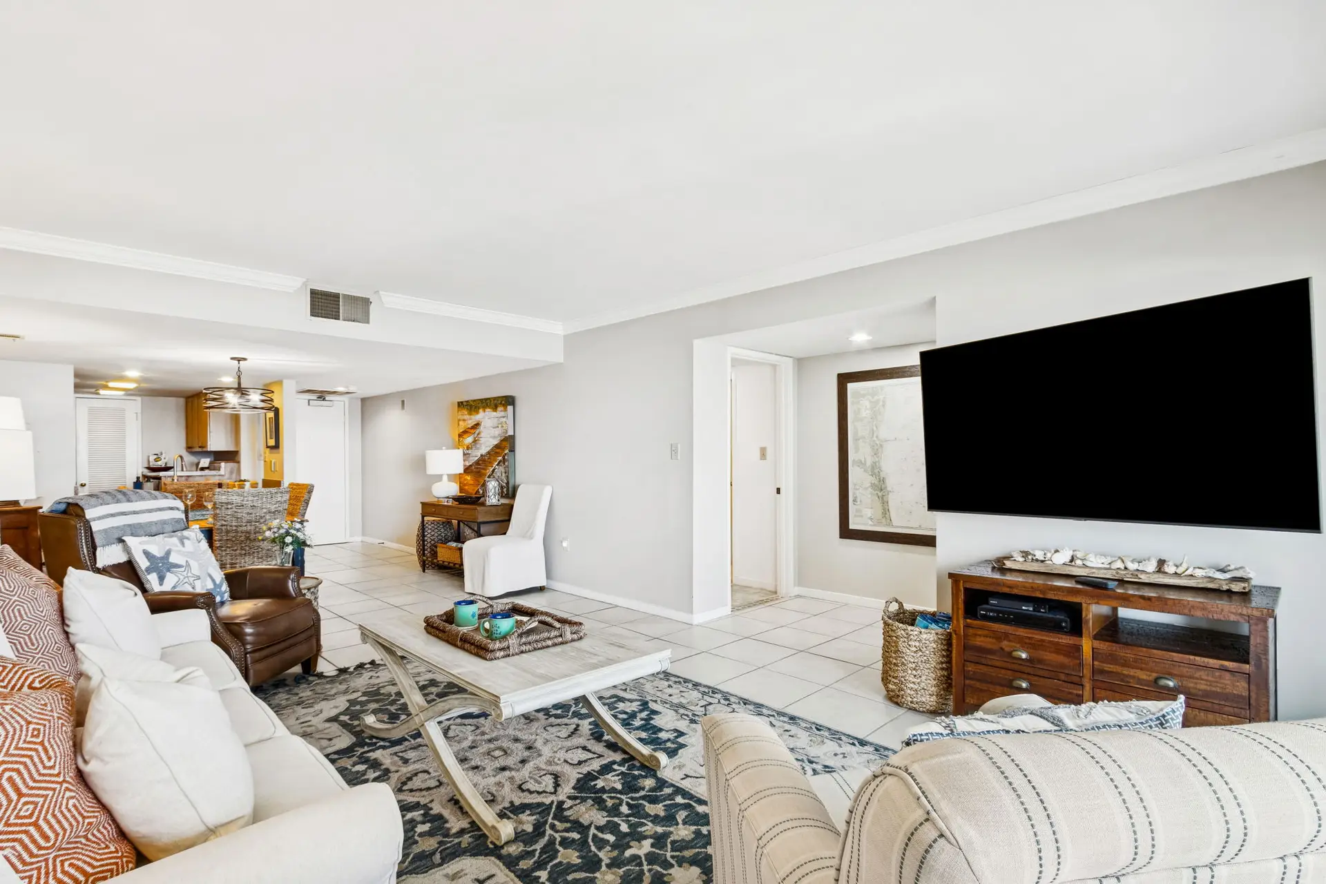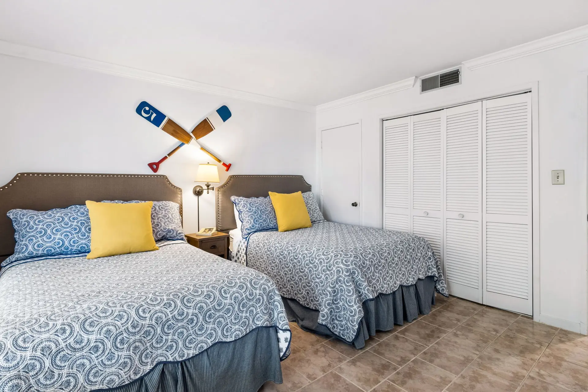 Perched on the 6th floor of the Surf & Racquet Club’s B building, this 2-bedroom, 2-bath condo offers one of the best views in the community. From this higher floor, you’ll enjoy a sweeping perspective over the dunes and out across the Atlantic—sunrises here are truly stunning, and the elevated setting makes the balcony a favorite spot morning through evening.