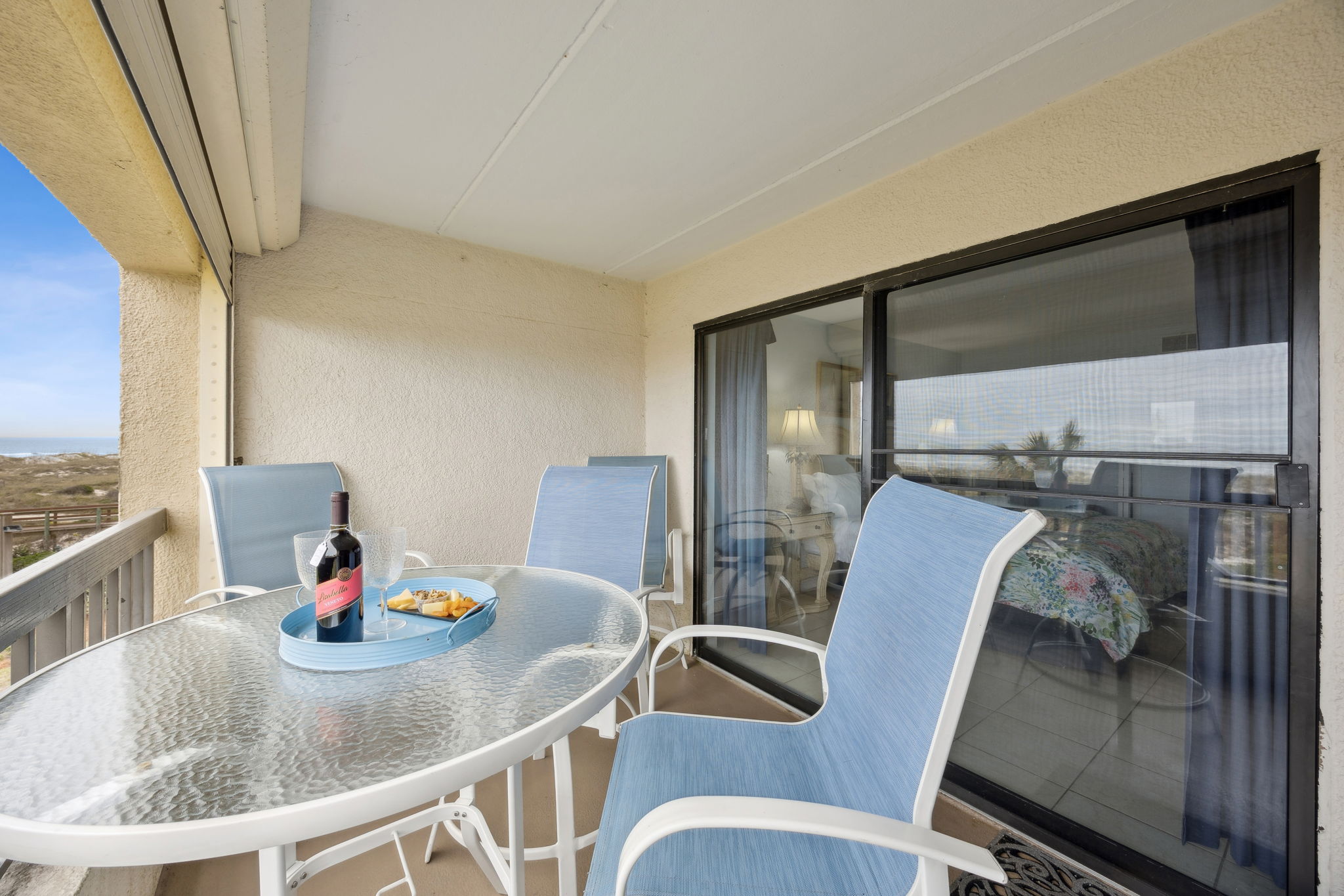 Step out onto the private balcony to enjoy the ocean breeze, listen to the waves, and take in the peaceful surroundings. The balcony features a four-person high-top table, making it an ideal spot for morning coffee, sunset drinks, or dining outdoors.